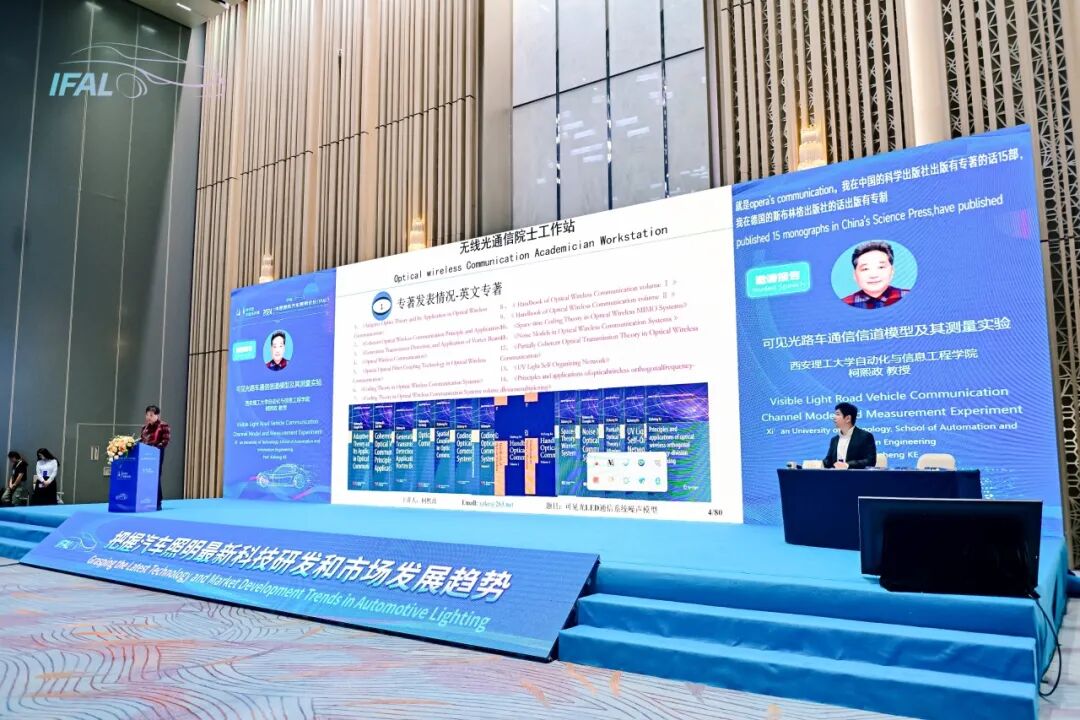 西安理工大學自動化與信息工程學院的柯熙政教授作了題為《可見光路車通信信道模型及其測量實驗》的報告,深入探討了在提升汽車照明系統效率與安全性方面的潛在優勢,以及未來車載通信技術的發展趨勢。