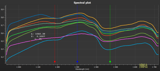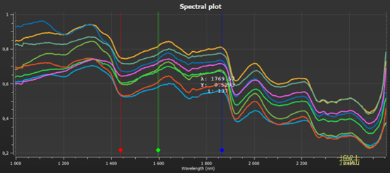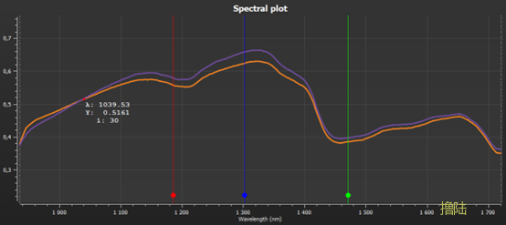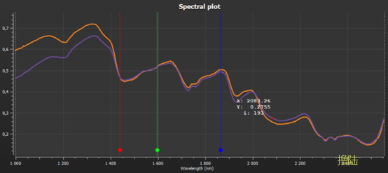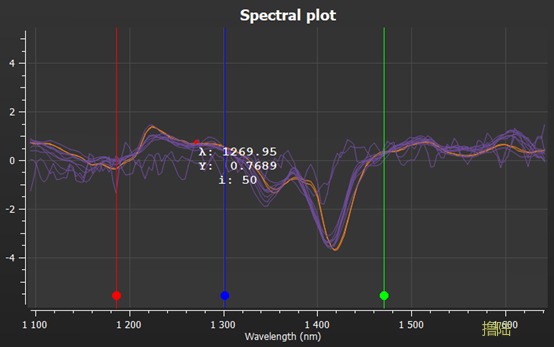 我們還強調,可以使用適當的預處理技術來增強光譜差異。此外,可以定義僅覆蓋相關范圍的光譜感興趣區域 (ROI),這展示了 Specim FX 相機的另一個優勢。