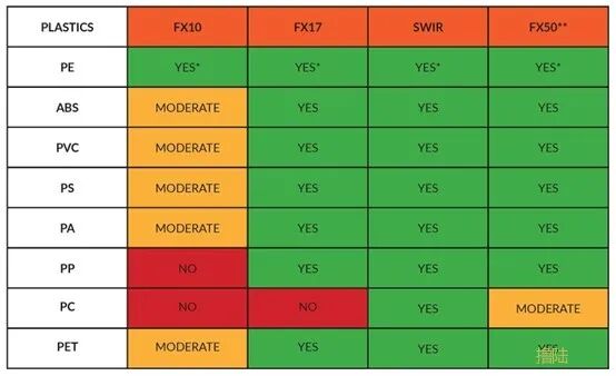 總之,Specim FX 相機(jī)適用于對(duì)塑料進(jìn)行分類,無(wú)論其顏色如何。根據(jù)應(yīng)用要求,可以使用不同的相機(jī)。下表 1 總結(jié)了結(jié)果。