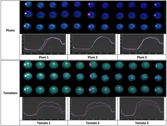 對于李子,該模型基于從 588 到 976 納米的縮小光譜范圍。對于西紅柿,該模型基于 445 到 993 納米之間的光譜帶。