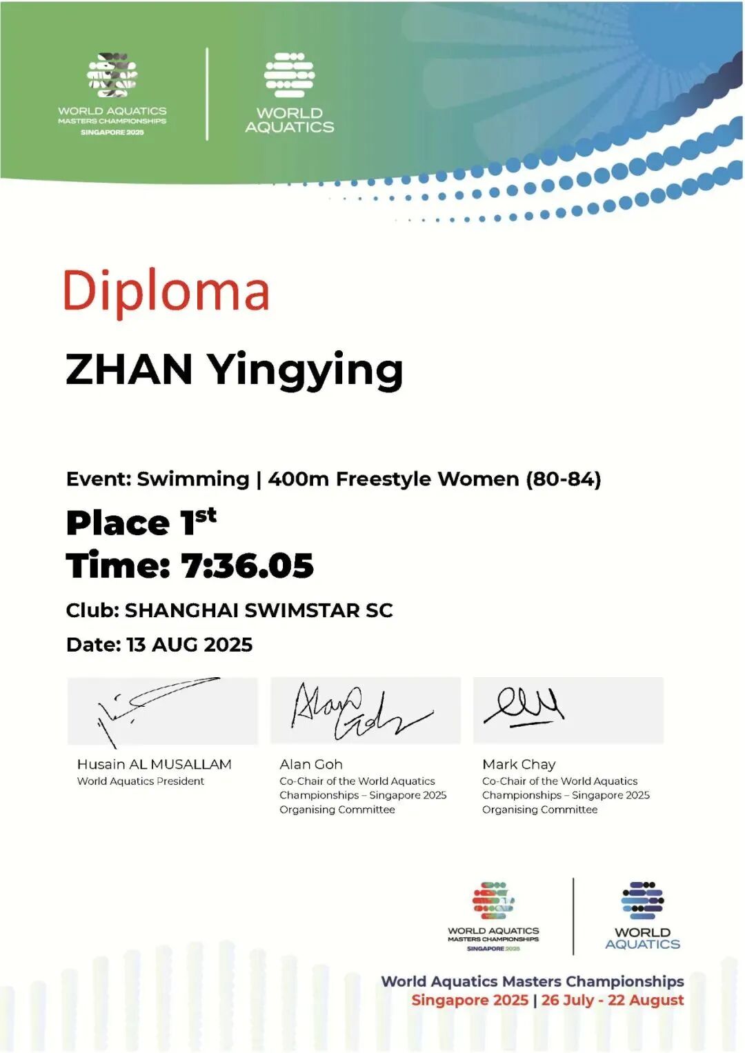 We respect all regulations of the World Aquatics, China Swimming Association, Singapore Organizing Committee and SWIMSTAR Club