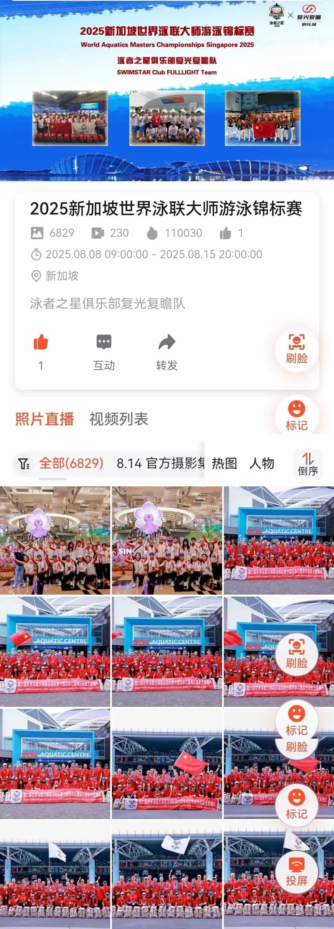 During the Singapore Masters Swimming World Championships, the photo mini program of SWIMSTAR Club Fulllight Team has exceeded 110,000 views!