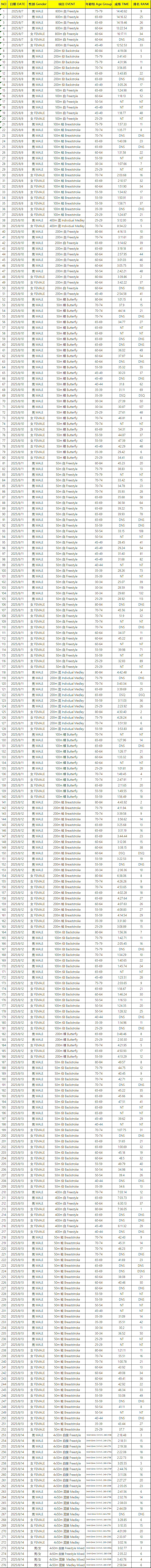 這是公開水域和泳池賽的成績單