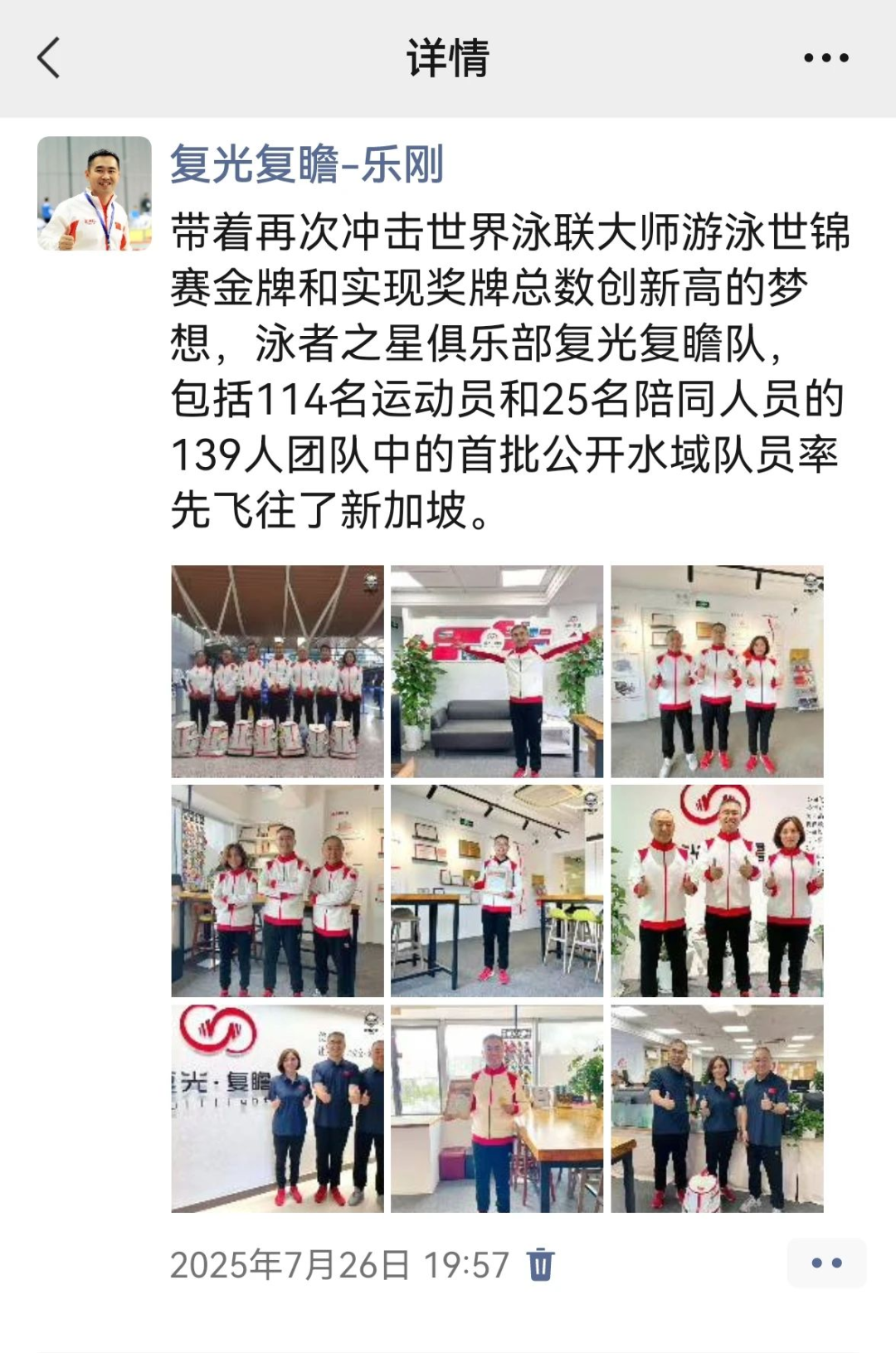 大家輪番出征新加坡,參加世界泳聯第21屆大師游泳世錦賽