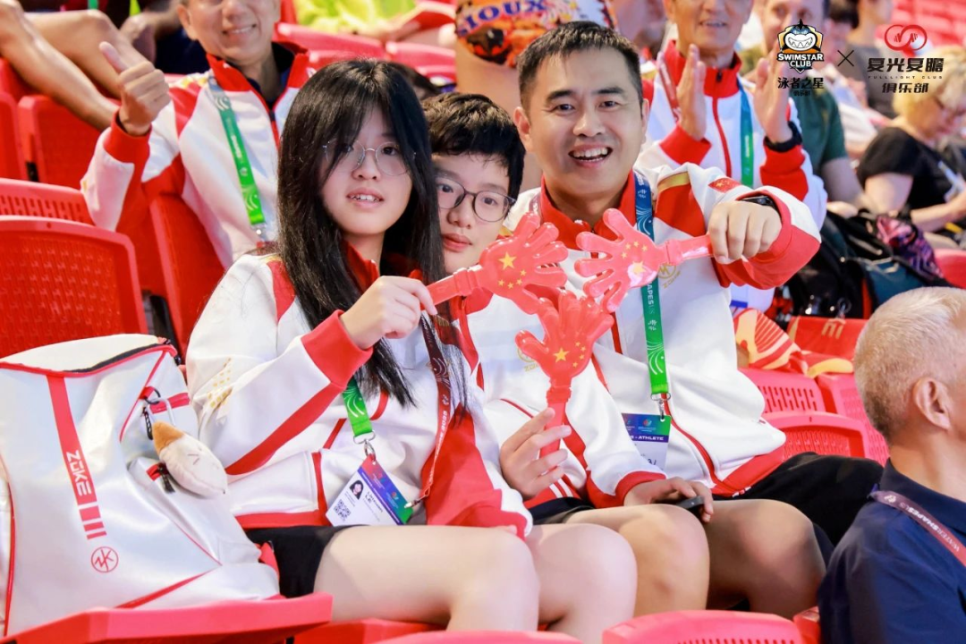 我們滿懷信心,每場都給泳池中的隊員喝彩