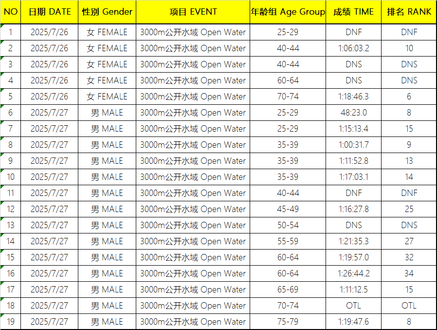 我自己的個人項目也從2017布達佩斯的3000米公開水域第72名-2019光州的第39名-2024多哈的第30名進步到了2025新加坡的第25名
