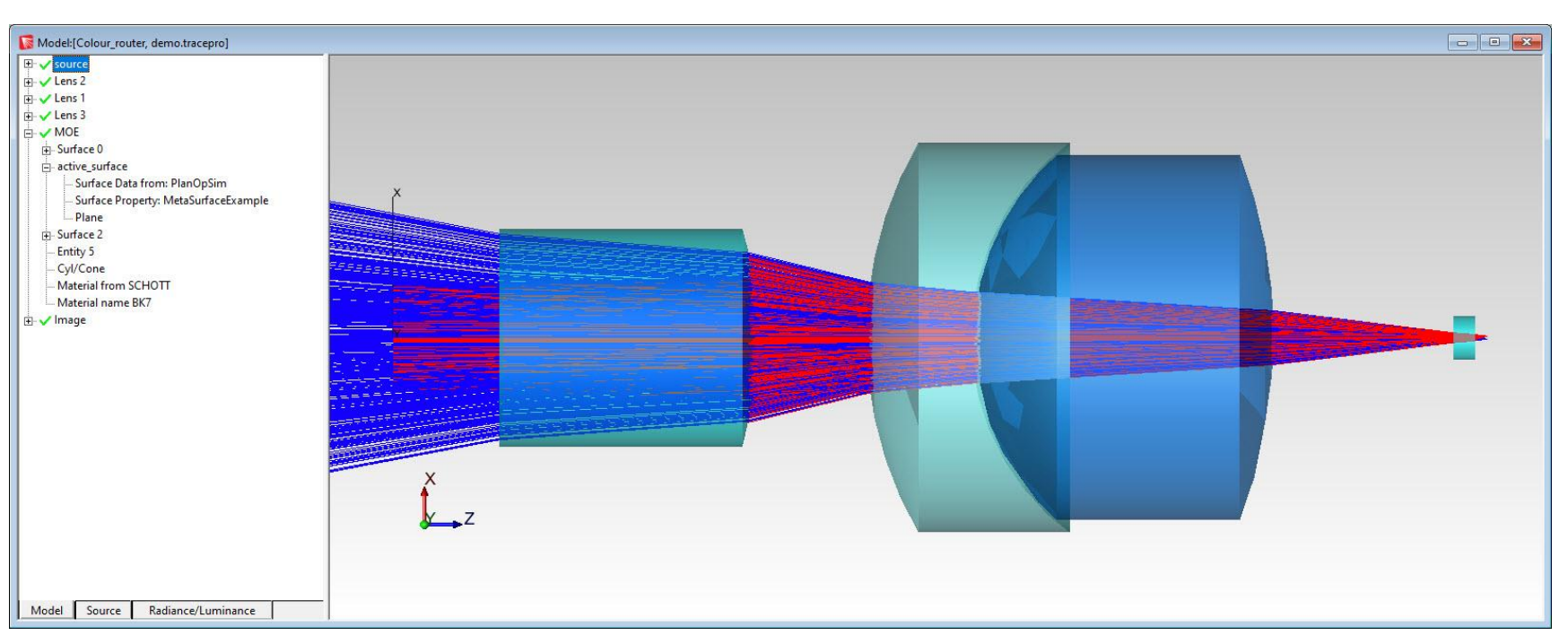 TracePro 2025.3 引入了一項強大的新功能:支持使用 PlanOpSim 光線追蹤 (PRST) 文件模擬超表面。這些文件由 PlanOpSim 的 Meta-Component 軟件生成,使設計人員能夠對具有納米結構圖案的表面行為進行建模,這些圖案可以以傳統(tǒng)光學器件無法做到的方式彎曲、聚焦或縱光線。超表面在 AR/VR、成像和緊湊型傳感系統(tǒng)等領域迅速興起,TracePro 現在為工程師提供了將這些組件直接集成到其光學工作流程中的工具。