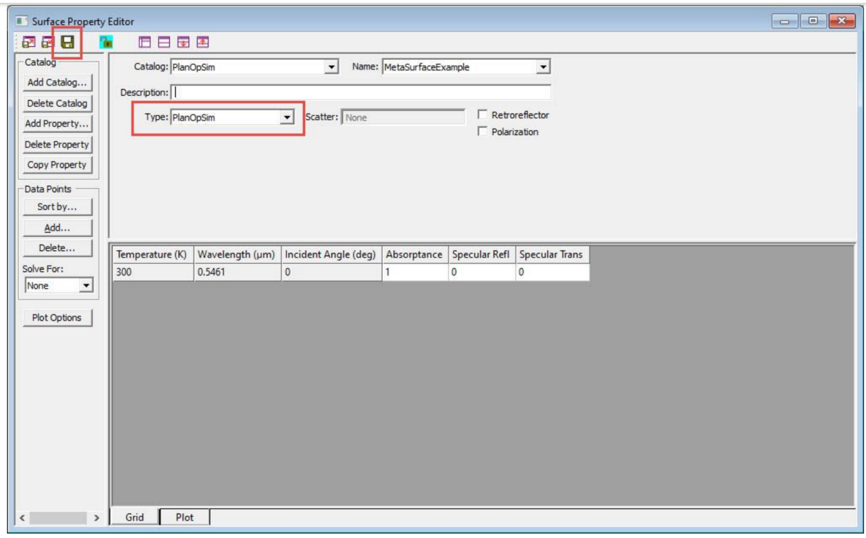 新增了使用PlanOpSim軟件設計的超表面建模功能,作為一種新的表面屬性類型。簡而言之,要建立PlanOpSim超表面模型需遵循以下步驟: