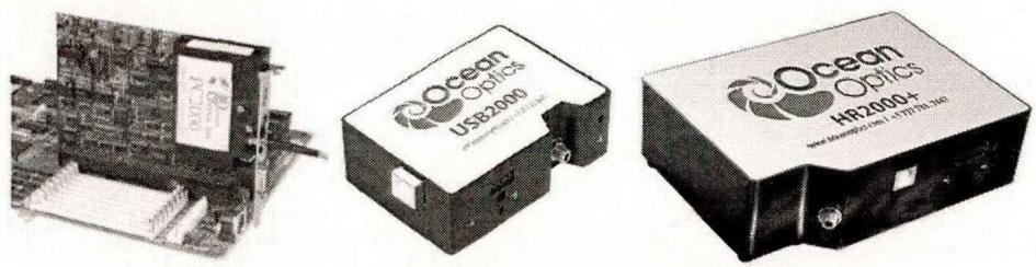 圖1:海洋光學微型光譜儀系列產品。從左到右分別展示了不同型號的緊湊型光譜儀,重量僅190克左右,可通過USB供電,極其便攜