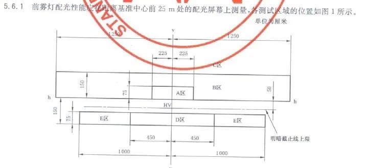前霧燈使用的全部是下射光線,下射角度大于0.57度。在國(guó)標(biāo)GB4785-2007中規(guī)定,前霧燈的安裝位置在離地面800mm以下,整個(gè)視表面應(yīng)該在近光燈視表面最高點(diǎn)以下。且發(fā)射光不直接或間接通過(guò)后視鏡(或其他反射面)而引起駕駛員的不舒適感。