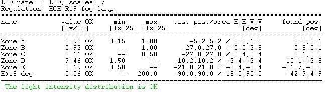 在汽車近光燈的白光中,III區(qū)和HV點(diǎn)的光照度不得大于0.7lx(氣體放電燈小于1lx),B50L點(diǎn)的光照度不得大于0.4lx(氣體放電燈小于 0.5lx)。就是基于避免產(chǎn)生人生理眩目的考慮。HV 和附近的III區(qū)主要防止前車駕駛者產(chǎn)生眩目,B50L點(diǎn)和附近的III區(qū)主要防止對(duì)面車駕駛者產(chǎn)生眩目。50L、75L有上限的要求,主要是為了防止燈光打到路面后反射光后使對(duì)面駕駛員的眩目作用。50L小于15lx和75L小于12lx(氣體放電燈對(duì)應(yīng)的是50L小于20lx和25L小于30lx)。超標(biāo)的后果是:會(huì)車時(shí)地面的反射光會(huì)產(chǎn)生眩光,當(dāng)?shù)孛嬗蟹e水或積雪時(shí),眩目更加嚴(yán)重。